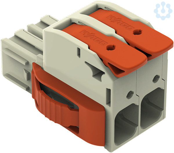 1-Leiter-Federleiste; Hebel; Push-in CAGE CLAMP®; 16 mm²; Rastermaß 10,16 mm; 2-polig; 100% fehlsteckgeschützt; seitliche Verriegelungsklinken; versilberte Kontakte; 16,00 mm²; lichtgrau