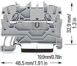 Bei dieser Durchgangsklemme mit der Artikelnummer 2000-1201 steht eine einfache und zuverlässige Verbindung im Fokus. Für den Leiteranschluss werden bei dieser Durchgangsklemme Abisolierlängen von 9 bis 11 mm benötigt. Ganz gleich, ob in Industrieanwendungen oder in Gebäudeapplikationen: Mit den Durchgangsreihenklemmen lassen sich elektrische Leiter schnell und sicher miteinander verbinden. Je nach Ausführung eignen sie sich für die klassische Durchgangsverdrahtung oder Potentialverteilungen. Dieses Produkt ist mit der Push-in CAGE CLAMP®-Technologie ausgerüstet. Die Push-in CAGE CLAMP® Anschlusstechnik ist der Universalanschluss für alle Leiterarten mit dem Zusatznutzen des direkten Steckens. Starre Leiter sowie feindrähtige Leiter mit Aderendhülse können ohne Werkzeug direkt in die Klemmstelle gesteckt werden. Die Maße sind in Breite x Höhe x Tiefe (3,5 x 48,5 x 39,5) mm. In Abhängigkeit von der Leiterart ist diese Durchgangsklemme für Leiterquerschnitte von 0,14 mm² bis 1,5 mm² ausgelegt.