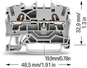 2-Leiter-Durchgangsklemme; 2,5 mm²; für Anwendungen Ex e II geeignet; seitliche und mittige Beschriftung; für Tragschiene 35 x 15 und 35 x 7,5; Push-in CAGE CLAMP®; 2,50 mm²; grau