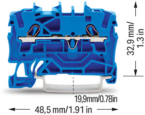 2-Leiter-Durchgangsklemme; 2,5 mm²; für Anwendungen Ex e II u. Ex i geeignet; seitliche und mittige Beschriftung; für Tragschiene 35 x 15 und 35 x 7,5; Push-in CAGE CLAMP®; 2,50 mm²; blau