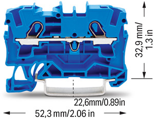 2-Leiter-Durchgangsklemme; 4 mm²; für Anwendungen Ex e II u. Ex i geeignet; seitliche und mittige Beschriftung; für Tragschiene 35 x 15 und 35 x 7,5; Push-in CAGE CLAMP®; 4,00 mm²; blau