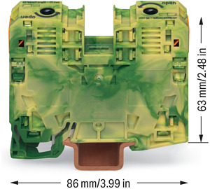 2-Leiter-Schutzleiterklemme,35 mm²,seitliche Beschriftungsaufnahmen,grün-gelb