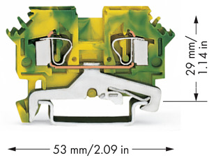 2-Leiter-Schutzleiterklemme; 4 mm²; seitliche Beschriftungsaufnahmen; für Tragschiene 35 x 15 und 35 x 7,5; CAGE CLAMP®; 4,00 mm²; grün-gelb