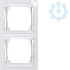 E-Design-Rahmen. 2-fach-Rahmen reinweiß glänzend, 84x155mm außen. Rahmen-Innenmaß 63x63mm, 13,5mm hoch. Für alle E-Design-Taster und -Sensoren. Dieser Rahmen ist nur senkrecht für Sensoren nutzbar.