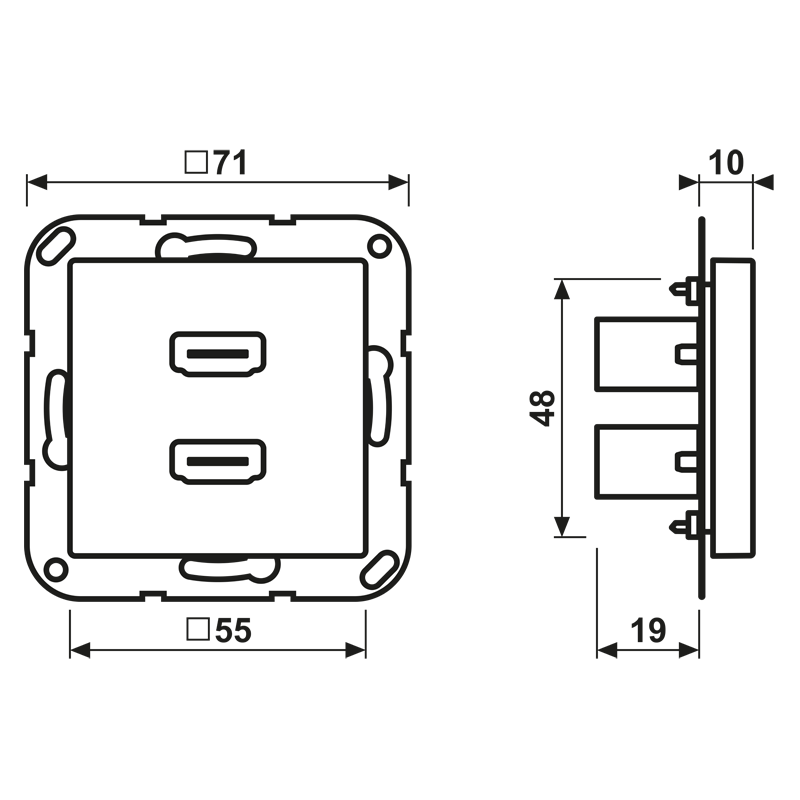 2 x HDMI, Thermoplast lackiert, Serie A, anthrazit matt
