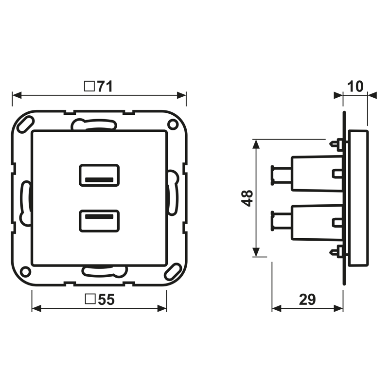 2 x USB 2.0, Thermoplast lackiert, Serie A, anthrazit matt