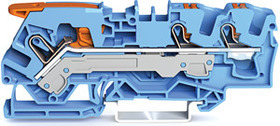 3-Leiter-Durchgangsklemme; mit Hebel und Drücker; 6 mm²; mit Prüföffnung; für Anwendungen Ex i geeignet; seitliche und mittige Beschriftung; für Tragschiene 35 x 15 und 35 x 7,5; Push-in CAGE CLAMP®; 6,00 mm²; blau