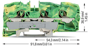 3-Leiter-Schutzleiterklemme; 16 mm²; für Anwendungen Ex e II geeignet; seitliche und mittige Beschriftung; für Tragschiene 35 x 15 und 35 x 7,5; Push-in CAGE CLAMP®; 16,00 mm²; grün-gelb