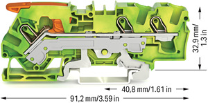 3-Leiter-Schutzleiterklemme; mit Hebel und Push-in CAGE CLAMP®; 6 mm²; mit Prüföffnung; seitliche und mittige Beschriftung; für Tragschiene 35 x 15 und 35 x 7,5; Push-in CAGE CLAMP®; 6,00 mm²; grün-gelb