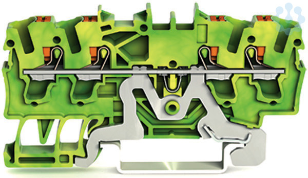4-Leiter-Schutzleiterklemme mit Drücker 2,5mm² grün-gelb
