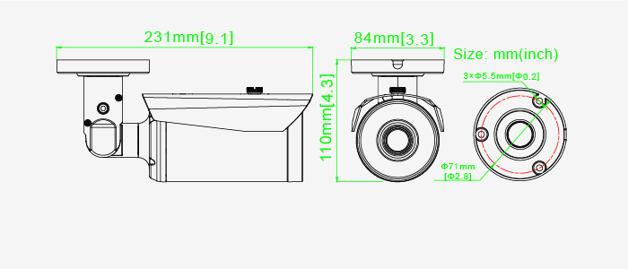 AHD Full HD wetterfeste Tag/Nacht-Kamera mit Motorzoom, 1/2,9 Zoll 2,2 MP Sony CMOS Sensor, Auflösung 1920 x 1080p, mind. Beleuchtung 0,1 Lux (Farbe) / 0,001 Lux (s/w). Inkl. 2,8-11mm Motorzoom-Objektiv (horizontaler Erfassungswinkel 104-35°) mit Auto-Fokus, 8 Hochleistungs-Infrarot-LEDs (Nachtsicht bis 30m), Tag/Nacht-IR-Filter und DWDR-Funktion. Einstellungen des OSD-Bildschirmmenüs sowie Zoomen über das Koax-Kabel vom passenden DVR aus. Spannungsversorgung: 12V DC, 600mA. Stabiles Aluminiumgehäuse mit Halterung zur Wand- und Deckenmontage mit innenliegender Kabelführung und 70cm Anschlusskabel mit BNC- und 12V-Kupplungen. Passender DC-Adapterstecker mit Schraubklemmen ist beigepackt. Ausgang auf PAL-Videosignal (960H: horizontaler Erfassungswinkel 102-33°), TVI oder CVI umschaltbar. Schutzart: IP66. Farbe: signalweiß ähnlich RAL 9003. Gehäuseabmessungen: D 75 x 148mm. Passendes Zubehör: Anschlusskasten AK201, AK303, Masthalterung MH151, Steckernetzgerät NG1000, Unterputznetzgerät ORBIT-12/2000V.