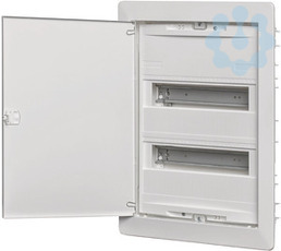 Hohlwand-Kleinverteiler mit Steckklemmen,N+PE je 3 x2,5-16 + 14 x1,5-4mm²,zusätzliche N-FI-Klemme 3 x16,2 x10mm²,Blendrahmen BxHxT (mm) 344 x474 x11,Ausschnittmaße BxHxT (mm) 310 x420 x88,TE je 18mm 24/28,Reihen 2,Hohlwand-Kleinverteiler,Schutzisoliert II,Schutzart: IP 30,Für Geräte bis 63A,Farbton: RAL 9016,verkehrsweiß,Einfachster Türanschlagwechsel ohne Demontage des Blendrahmens,Flacher Türverschluss mit Schnapptechnik,EinfachesAustauschen gegen ein Schloss,Geeignet für Einbaugeräte bis 70mm Tiefe,Gebaut nach DIN VDE 0603-1,DIN 43871,MauerkastenAus Kunststoff,mit GerätetragschieneAus Stahlblech,Tiefe 88/90mm,N/PE-Steckklemmen,fingersicher in montagefreundlicher Schnapptechnik,N-FI-Erweiterungsklemme,serienmäßig für 2-,3- und 4-reihige Verteiler zur seitlichen Schnappbefestigung enthalten,Geräteabdeckung mit Geräteausschnitten,H = 46mm,für 12 TE,(symmetrisch erweiterbarAuf 14 TE),Plombierbar,2-Punkt-Befestigung,Blendrahmen mit VolltürAus Stahlblech,Stromkreisbeschriftungen und Blatt mit Piktogrammen,Putzschutzplatte,