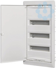Hohlwand-Kleinverteiler mit Steckklemmen,PE 6 x2,5-16 + 21 x1,5-4mm²,N+N 2 x(3 x2,5-16 + 14 x1,4-4mm²),zusätzliche N-FI-Klemme 3 x16,2 x10mm²,Blendrahmen BxHxT (mm) 344 x624 x11,Ausschnittmaße BxHxT (mm) 310 x570 x88,TE je 18mm 36/42,Reihen 3,Hohlwand-Kleinverteiler,Schutzisoliert II,Schutzart: IP 30,Für Geräte bis 63A,Farbton: RAL 9016,verkehrsweiß,Einfachster Türanschlagwechsel ohne Demontage des Blendrahmens,Flacher Türverschluss mit Schnapptechnik,EinfachesAustauschen gegen ein Schloss,Geeignet für Einbaugeräte bis 70mm Tiefe,Gebaut nach DIN VDE 0603-1,DIN 43871,MauerkastenAus Kunststoff,mit GerätetragschieneAus Stahlblech,Tiefe 88/90mm,N/PE-Steckklemmen,fingersicher in montagefreundlicher Schnapptechnik,N-FI-Erweiterungsklemme,serienmäßig für 2-,3- und 4-reihige Verteiler zur seitlichen Schnappbefestigung enthalten,Geräteabdeckung mit Geräteausschnitten,H = 46mm,für 12 TE,(symmetrisch erweiterbarAuf 14 TE),Plombierbar,2-Punkt-Befestigung,Blendrahmen mit VolltürAus Stahlblech,Stromkreisbeschriftungen und Blatt mit Piktogrammen,Putzschutzplatte,