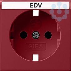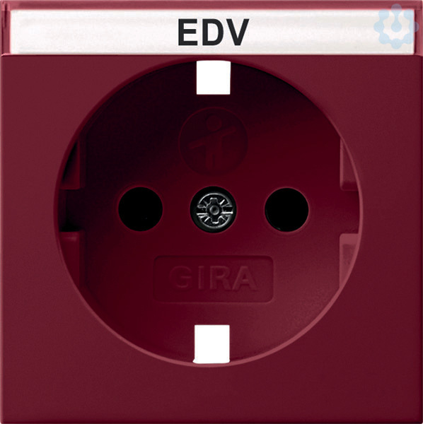 Abdeckung für SCHUKO-Steckdose 16 A 250 V~ mit integriertem erhöhten Berührungsschutz (Shutter) und Symbol und Beschriftungsfeld Rot glänzend