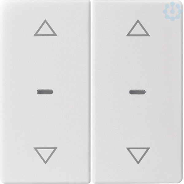 Abdeckung für Tastsensor-Modul 2fach mit Pfeil-Symbol Q.x polarweiß.Abdeckung für Tastsensor-Modul 2-fach, mit klarer Linse. Unterputz-Installation, Material: Kunststoff, halogenfrei.
