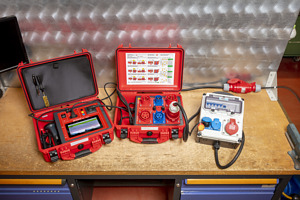 Benning MA 4 für die aktive und passive Prüfung von 1- und 3-phasigen Geräten (inkl. Schweißgeräte), sowie Verlängerungsleitungen. Anschluss für Prüflinge mit CEE 16 A/230 V, CEE 16 A/400 V und CEE 32 A/400 V Stecker. Messadapter kann mit 32 A voll belastet werden. Unterstütze Messungen: RPE Schutzleiterwiderstand, RISO Isolationswiderstand, IDiff. Differenzstrom, IEA Ersatzableitstrom, Auslösezeit und Auslösestrom von PRCDs. Betriebsmittel- und Kabel-Funktionsprüfung inkl. Leitungsbruch-, Kurzschluss- und Drehfeldprüfung. Eigentest: Bewusste Zuschaltung eines Gerätefehlerstroms (1 mA/ 3 mA) zur Prüfung des gesamten Testsystems. 7 Status-LEDs und 1 Netz-LED. Robuster und staub-/wasserdichter Schutzkoffer IP 67. Sicherung 16 A (749764).