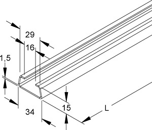 Ankerschiene, C-Profil, Schlitzweite 16 mm, 34x15x2000 mm, ungelocht, Stahl, feuerverzinkt DIN EN ISO 1461
