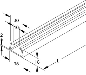 Ankerschiene, C-Profil, Schlitzweite 16 mm, 35x18x2000 mm, ungelocht, Stahl, feuerverzinkt DIN EN ISO 1461