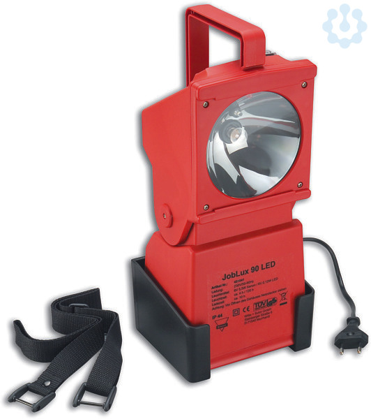 JobLux 90 LED (Art.Nr. 451041, rot)Arbeitsleuchte mit Notlichtfunktion (d.h. schaltet sich bei Stromausfall ein) und umschaltbarer Haupt-/Pilotlampe; elektronisch geregelte Akku-Ladung per integriertem Netzkabel; LED-Ladekontrollanzeige. Qualitätsakkus: überladungs- und tiefentladungssicher. Leuchtenkopf um ca. 120 Grad vertikal schwenkbar; inkl. Tragegurt und Wandhalterung.