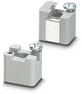 Auflagebock, mit Kontakt zur Montageauflage, mit Halteschraube, verwendbar für Sammelschiene 3 x 10 mm, Farbe: grau