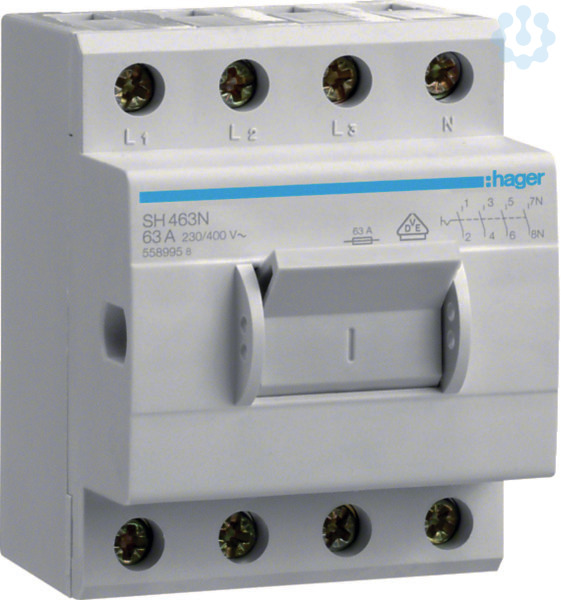 Kompaktschalter 63A, 4-polig, ermöglicht das Schalten von Strömen bis zu 63A bei 400V AC. Ausgestattet mit vier Schließern und einer Baubreite von 3,5 Platzeinheiten. Ideal für die Installation in Verteilerkästen mit begrenztem Platzangebot. Bietet zuverlässige Leistungsunterbrechung und hohe Schaltleistung.