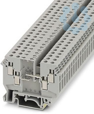 Bauelementreihenklemme, zum Einbau von selbst wählbaren Bauelementen, Nennspannung: 630 V, Nennstrom: 32 A, Anzahl der Anschlüsse: 4, Anschlussart: Schraubanschluss, Bemessungsquerschnitt: 4 mm², 1. Etage, Querschnitt: 0,2 mm² - 6 mm², Montageart: NS 35/7,5, NS 35/15, NS 32, Farbe: grau
