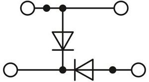 Bauelementreihenklemme, Der max. Strom wird durch die Diode bestimmt. Eingebaut: Diode 1N 4007, Sperrspannung: 1300 V, Dauergrenzstrom: 0,5 A., mit integrierter Diode, Nennstrom: 0,5 A, 1. und 2. Etage, Anschlussart: Zugfederanschluss, Bemessungsquerschnitt: 2,5 mm², Querschnitt: 0,08 mm² - 4 mm², Montage: NS 35/7,5, NS 35/15, Farbe: grau