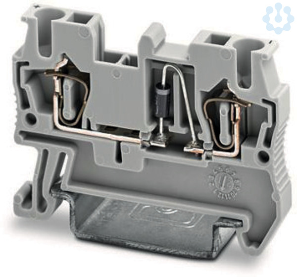 Bauelementreihenklemme, mit integrierter Diode 1N4007, Nennstrom: 0,5 A, Anschlussart: Zugfederanschluss, Bemessungsquerschnitt: 2,5 mm², Querschnitt: 0,08 mm² - 4 mm², Montage: NS 35/7,5, NS 35/15, Farbe: grau