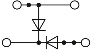 Bauelementreihenklemme, Der max. Strom wird durch die Diode bestimmt. Eingebaut: Diode 1300 V 1 A, Sperrspannung: 1300 V, Dauergrenzstrom: 0,5 A., mit integrierter Diode, Nennstrom: 0,5 A, Anschlussart: Schraubanschluss, 1. und 2. Etage, Bemessungsquerschnitt: 2,5 mm², Querschnitt: 0,14 mm² - 4 mm², Montageart: NS 35/7,5, NS 35/15, Farbe: grau