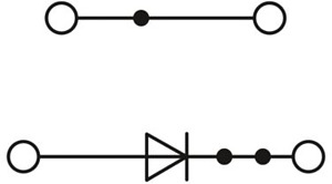 Bauelementreihenklemme, Der max. Strom wird durch die Diode bestimmt. Eingebaut: Diode 1N 4007, Sperrspannung: 1300 V, Dauergrenzstrom: 0,5 A., mit integrierter Diode, Nennstrom: 0,5 A, Anschlussart: Schraubanschluss, 1. und 2. Etage, Bemessungsquerschnitt: 2,5 mm², Querschnitt: 0,14 mm² - 4 mm², Montageart: NS 35/7,5, NS 35/15, Farbe: grau