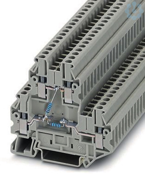 Bauelementreihenklemme, Anschlussart: Schraubanschluss, 1. und 2. Etage, Bemessungsquerschnitt: 2,5 mm², Querschnitt: 0,14 mm² - 4 mm², Montageart: NS 35/7,5, NS 35/15, Farbe: grau
