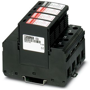 Universeller steckbarer Blitzstrom- / Überspannungsableiter auf Varistorbasis für 3-phasige Stromversorgungsnetze mit separatem N und PE (5-Leitersystem: L1, L2, L3, N, PE), für die Blitzschutzklassen III und IV.