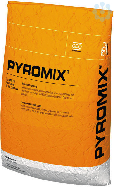 Mörtel zum Erstellen von Kabel- und Kombiabschottungen in massiven Wänden und Decken. Geeignet zum Pumpen, Pressen und zum Handeinbau. 20 kg Trockenmörtel ergeben bei Zugabe von ca. 6 Litern Wasser etwa 20 Liter verarbeitungsfähige Masse. Anwendung im Innenbereich.