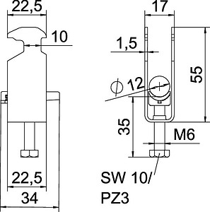 Bügelschelle mit Hammerkopf-Fuß, Kunststoffdruckwanne aus Polypropylen. Zur vertikalen und horizontalen Montage von 2 Einzelkabeln an C-Profilschiene. Für Schlitzweite 16 - 17 mm. Mit 1-gängiger Schraube an Druckwanne, universeller Sechskant-Schraubenkopf SW10, mit Schlitz und Kreuzschlitz. Geeignet für Montage im Innen- und Außenbereich. Mehrere Kabel sollten durch Doppelwannen getrennt werden. Der Einsatz einer Gegenwanne wird empfohlen.