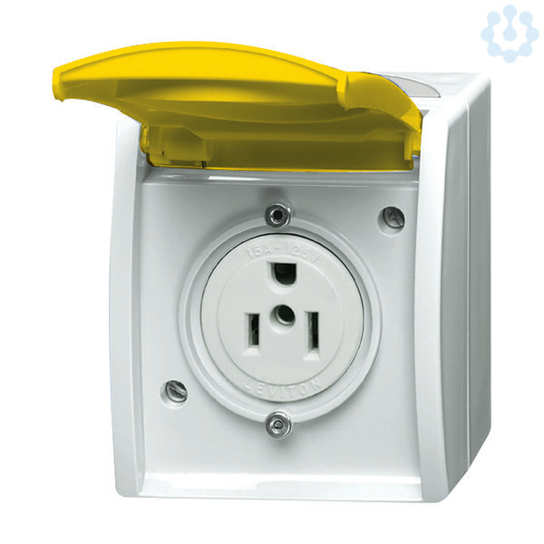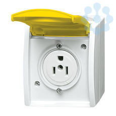 Busch-NEMA Steckdose mit Beschriftungsfeld mit Klappdeckel 15 A alpinweiß/gelb