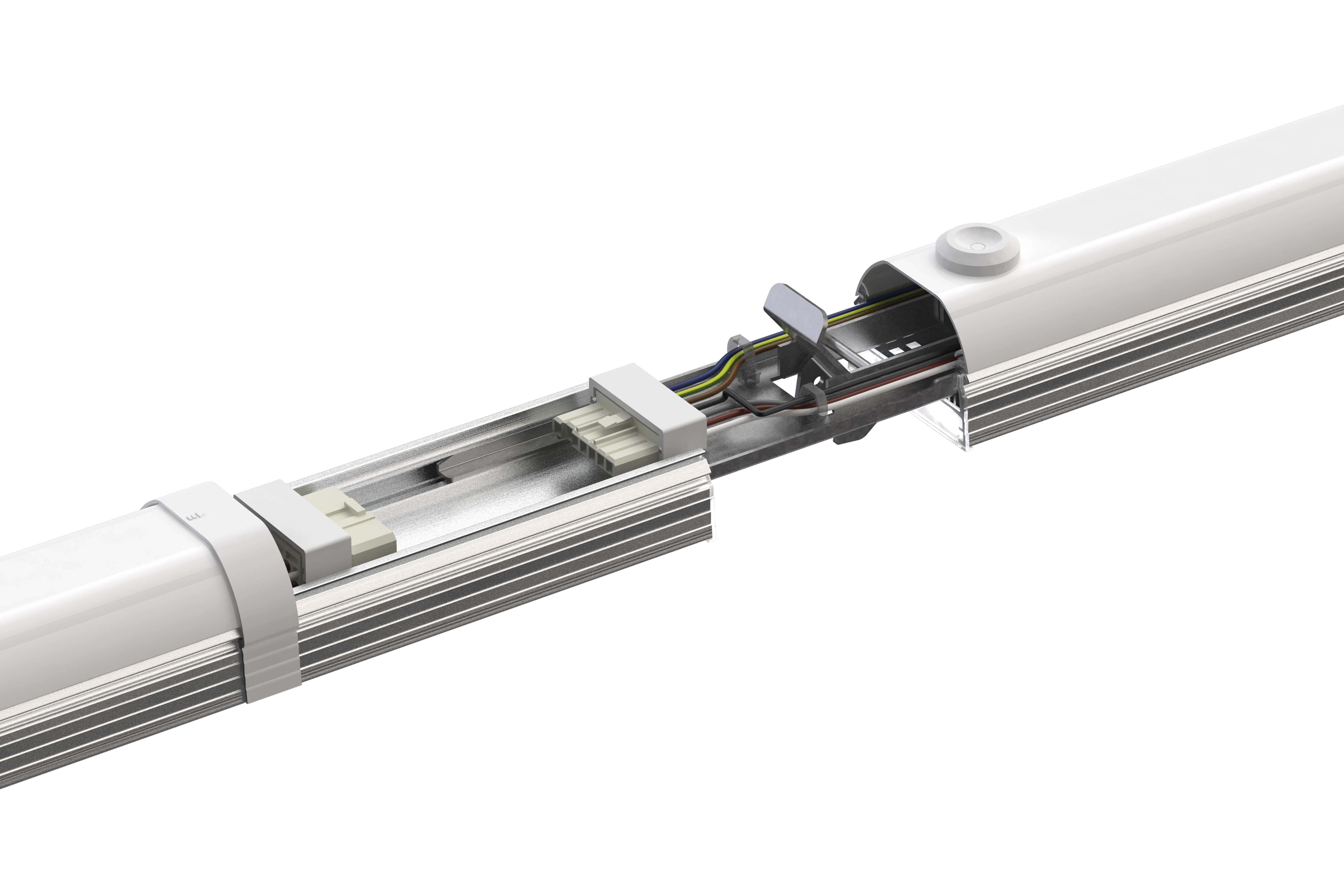 Universell einsetzbares LED-Lichtbandmodul für den Innenbereich und den geschützten Außenbereich. Einfache, schnelle Montage an Seil bzw. Kette oder Direktmontage an der Decke möglich. Für Leerfelder sind Leermodule erhältlich. Anschluss mit dem ClickLUX ROCKET Anschlussset. Steuerung via DALI möglich. Die Lichtfarbe kann über einen Schiebeschalter eingestellt werden (4000K, 5000K, 6500K), ebenso kann die Leistung am Vorschaltgerät konfiguriert werden (100%, 75%, 50%). Die glatte Oberfläche hat eine geringe Verschmutzungsneigung und ist leicht zu reinigen. Die Leuchte ist staub- und spritzwassergeschützt. Geeignet als Ersatz für ein konventionelles ein- oder zweiflammiges T8/T5-Lichtbandsystem. Durchgangsverdrahtung. Optimale Lichtlenkung durch Linsentechnik. Hochwertiges Gehäuse aus Aluminium. Flickerfrei. Montageklammern sind frei über die Länge der Leuchte verschiebbar. Lange Lebensdauer, hoher Lichtstrom, gute Farbwiedergabe. Besonders gleichmäßige Lichtverteilung. Geringer Wartungsaufwand. Energieeinsparung bis zu 50% gegenüber eines herkömmlichen Lichtbandsystems. Bruchsicher, geeignet für den Einsatz in IFS-zertifizierten Bereichen.