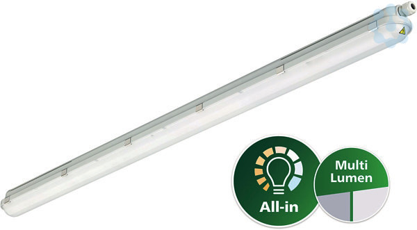 CoreLine Feuchtraumleuchte WT120C, All-in, 43 W, 25 W, L1500 mm, 3700 lm, 6000 lm, 4000 K, Symmetrisch, Klar, IP65, IK08, TW1-ready