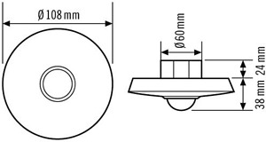 Decken-Präsenzmelder 360° Unterputz, Reichweite ca. Ø 8 m, Schließer potentialfrei, fernbedienbar