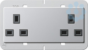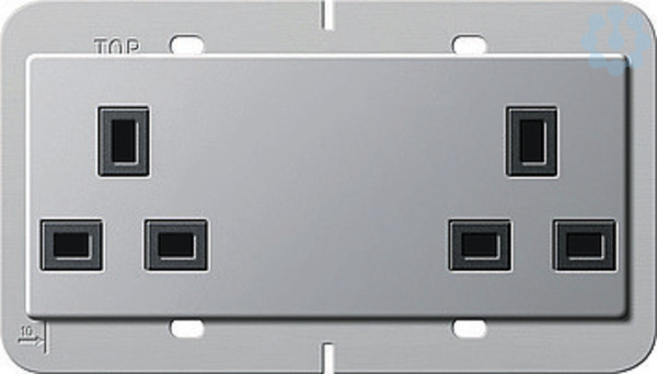 Doppelsteckdose British Standard (BS 1363-2) 13 A 250 V~ mit Shutter Gira E22, Tragring 80 x 132 mm Aluminium Merkmale: Mit Schraubklemmen. Nur für Schraubbefestigung.