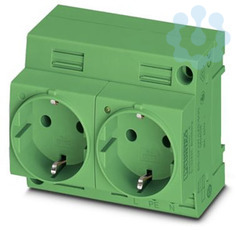 Doppelsteckdose, mit Leuchtanzeige, Steckgesicht Typ CF, Anschlussart: Schraubanschluss, Farbe: grün, Nennspannung: 250 V AC (50 Hz), Nennstrom: 16 A, Tragschienen- und Direktmontage, Normen/Bestimmungen: VDE 0620-1, IEC 60884-1, Länderkennzeichen: Deutschland