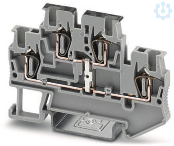 Doppelstock-Zugfederklemme, mit Potenzialverbinder, Nennspannung: 500 V, Nennstrom: 17,5 A, Anschlussart: Zugfederanschluss, 1. und 2. Etage, Bemessungsquerschnitt: 1,5 mm², Querschnitt: 0,08 mm² - 1,5 mm², Montageart: NS 35/7,5, NS 35/15, Farbe: grau