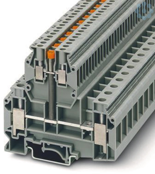 Doppelstockklemme, mit Potenzialverbinder, Nennspannung: 500 V, Nennstrom: 57 A, Anschlussart: Schraubanschluss, Bemessungsquerschnitt: 10 mm², Querschnitt: 0,5 mm² - 16 mm², Anschlussart: Schraubanschluss, 2. Etage, Bemessungsquerschnitt: 2,5 mm², Querschnitt: 0,2 mm² - 4 mm², Montageart: NS 35/7,5, NS 35/15, NS 32, Farbe: grau