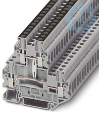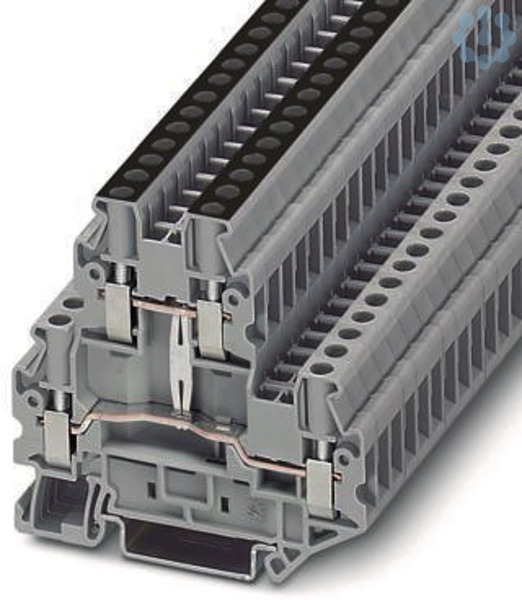 Doppelstockklemme, mit Potenzialverbinder, Nennspannung: 800 V, Nennstrom: 30 A, Anschlussart: Schraubanschluss, Bemessungsquerschnitt: 4 mm², Querschnitt: 0,14 mm² - 6 mm², Montageart: NS 35/7,5, NS 35/15, Farbe: grau