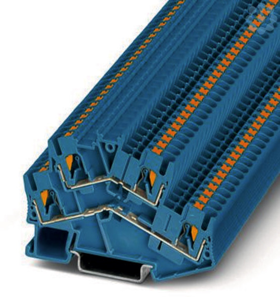 Doppelstockklemme, Nennspannung: 500 V, Nennstrom: 22 A, Anschlussart: Push-in-Anschluss, 1. und 2. Etage, Bemessungsquerschnitt: 2,5 mm², Querschnitt: 0,14 mm² - 4 mm², Montageart: NS 35/7,5, NS 35/15, Farbe: blau