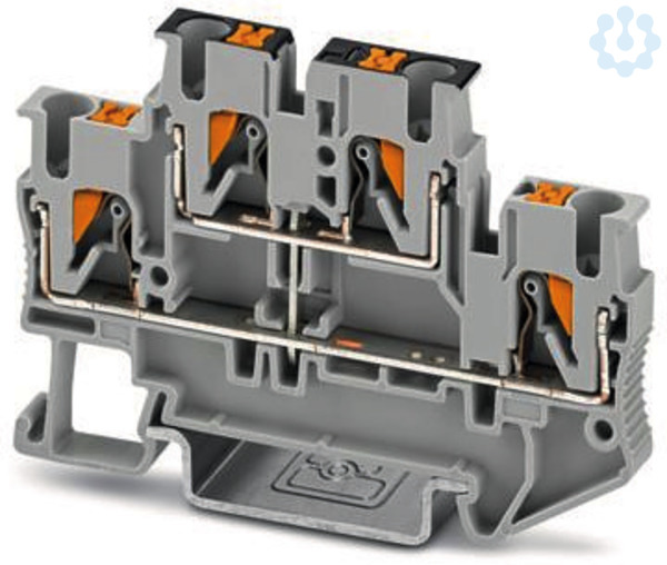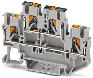 Doppelstockklemme, mit Potenzialverbinder, Nennspannung: 500 V, Nennstrom: 22 A, Anschlussart: Push-in-Anschluss, 1. und 2. Etage, Bemessungsquerschnitt: 2,5 mm², Querschnitt: 0,14 mm² - 4 mm², Montageart: NS 35/7,5, NS 35/15, Farbe: grau