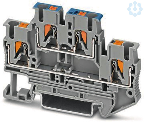 Doppelstockklemme, Nennspannung: 500 V, Nennstrom: 22 A, Anschlussart: Push-in-Anschluss, 1. und 2. Etage, Bemessungsquerschnitt: 2,5 mm², Querschnitt: 0,14 mm² - 4 mm², Montageart: NS 35/7,5, NS 35/15, Farbe: grau
