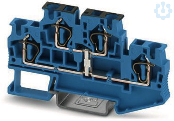 Doppelstockklemme, mit Potenzialverbinder, Nennspannung: 500 V, Nennstrom: 30 A, Anschlussart: Zugfederanschluss, 1. und 2. Etage, Bemessungsquerschnitt: 4 mm², Querschnitt: 0,08 mm² - 6 mm², Montageart: NS 35/7,5, NS 35/15, Farbe: blau