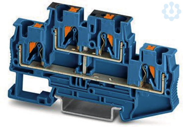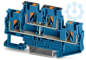 Doppelstockklemme, mit Potenzialverbinder, Nennspannung: 500 V, Nennstrom: 30 A, Anschlussart: Push-in-Anschluss, 1. und 2. Etage, Bemessungsquerschnitt: 4 mm², Querschnitt: 0,2 mm² - 6 mm², Montageart: NS 35/7,5, NS 35/15, Farbe: blau