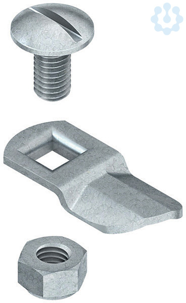 Drehriegel, zum nachträglichen bzw. zusätzlichen Einbau in Formstückdeckel von Kabelrinnen, für Verteilerrinnendeckel sowie für Weitspann Anbau T-Stück Deckel, einschließlich galvanisch verzinkter Flachrundkopfschraube mit Schlitz FL 6X12-S DIN 603 und galvanisch verzinkter Sicherungsmutter SMS 6 DIN EN ISO 10511. Eine Verwendung im Außenbereich, bedingt durch äußere Einflüsse wie z.B. Windlasten, ist nur mit einer zusätzlichen Sicherung (selbstschneidende Schrauben, Stahlband etc.) möglich. Bei der Befestigung ist darauf zu achten, dass ein Mindestabstand von ≥ 50 mm zum Deckelanfang/-ende eingehalten werden muss. Des Weiteren ist zu beachten, dass der Schraubenkopfschlitz fluchtend mit der Befestigungslasche der Drehriegelplatte montiert wird. Dadurch wird eine spätere Kontrollmöglichkeit für das ordnungsgemäße Verschließen (Stellung des Schraubenkopfschlitzes) aller vorhandenen Drehriegel am Deckel gewährleistet. Verwendung für : Formstückdeckel von Kabelrinnen Verteilerrinnendeckel RDSV 50, RDSV 100 Weitspann Anbau T-Stück Deckel WTARDV ... Lieferung : unmontiert und lose Werkstoff Riegel : Stahl, bandverzinkt nach DIN EN 10346