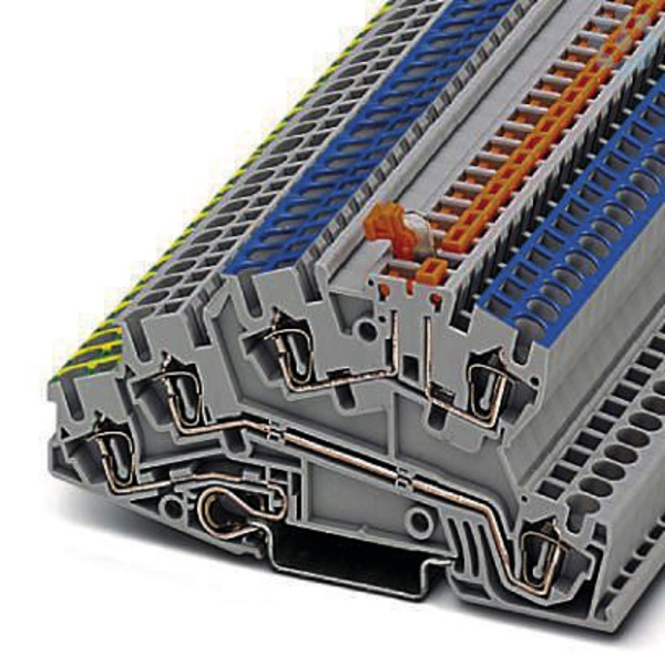 Dreistock-Installationsklemme 2,5 Federzuganschluss trennbar grau